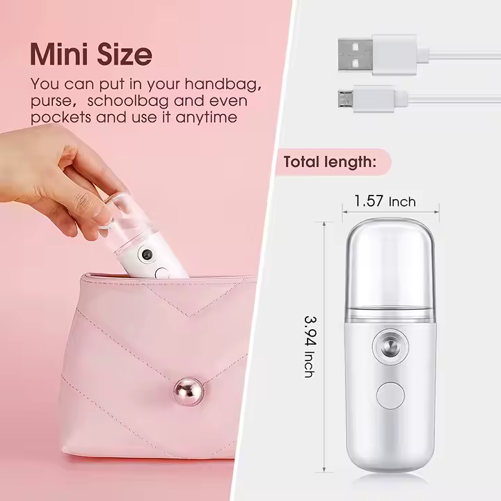 Tämä kannettava kasvohöyrytin tuo iholle kevyen ja raikkaan kosteutuksen missä tahansa. Hienojakoinen nano mist pehmentää ihoa, auttaa rauhoittamaan kiristystä ja tuo luonnollisen hehkun ilman vaivaa. Kevyt kosteuttava suihke tasoittaa ihon pintaa ja sopii kaikille ihotyypeille – kuivalle, rasvoittuvalle ja herkälle. Siirrettävä rakenne ja siirrettävä vesisäiliö tekevät käytöstä helppoa kotona, töissä tai matkalla. Tämä pieni kasvohöyrystin toimii lempeästi ja tuottaa tasaisen höyryn, joka virkistää ihoa ilman raskasta tunnetta.