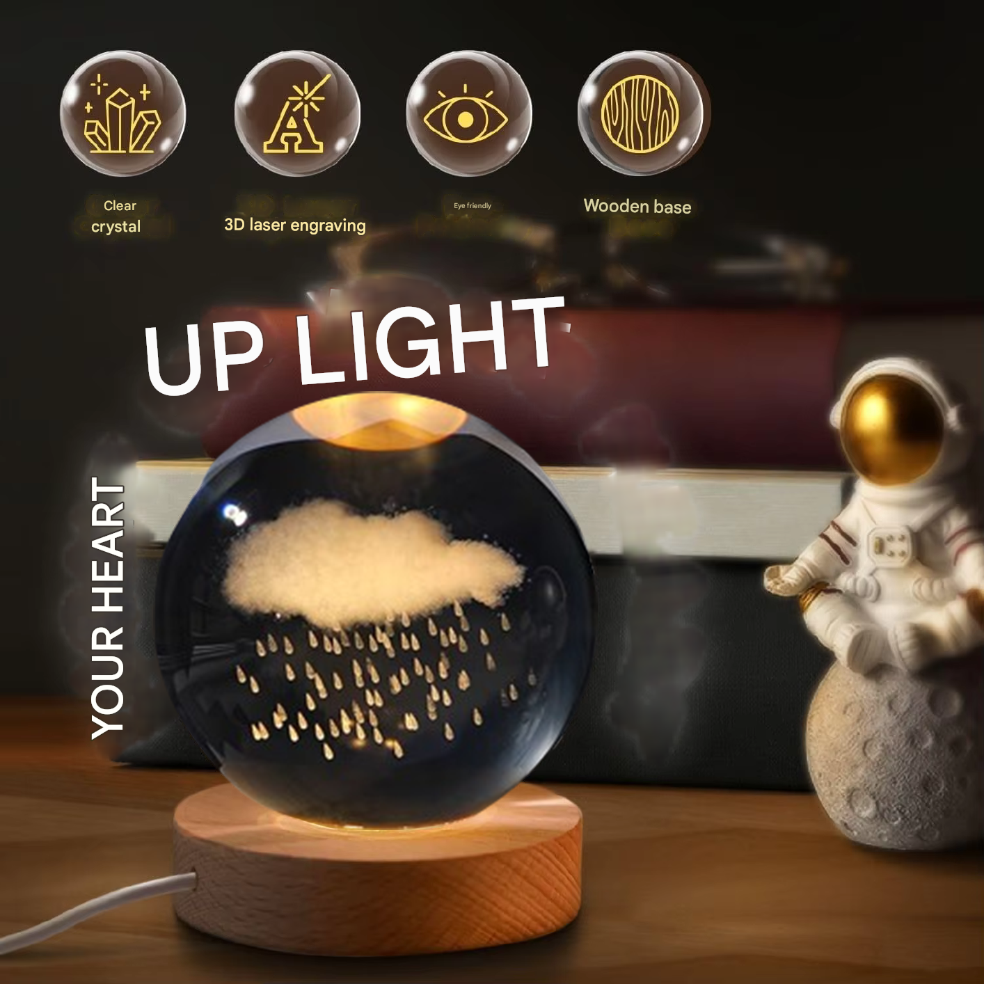 Aurinkokunta näkyy kristallin sisällä kauniisti. Ei epäselvää kuviota joka näkyy vain yhdestä kulmasta. Tämä pilvi yövalo antaa rauhallisen tunnelman, joka auttaa sinua rentoutumaan päivän stressin jälkeen. Kristallipallo hinta on rehellinen – maksat laadusta joka kestää vuosia, ei viikon käytön jälkeen hajoavasta lelusta.