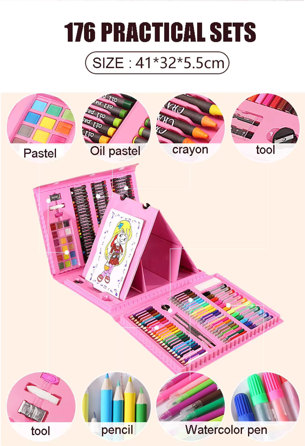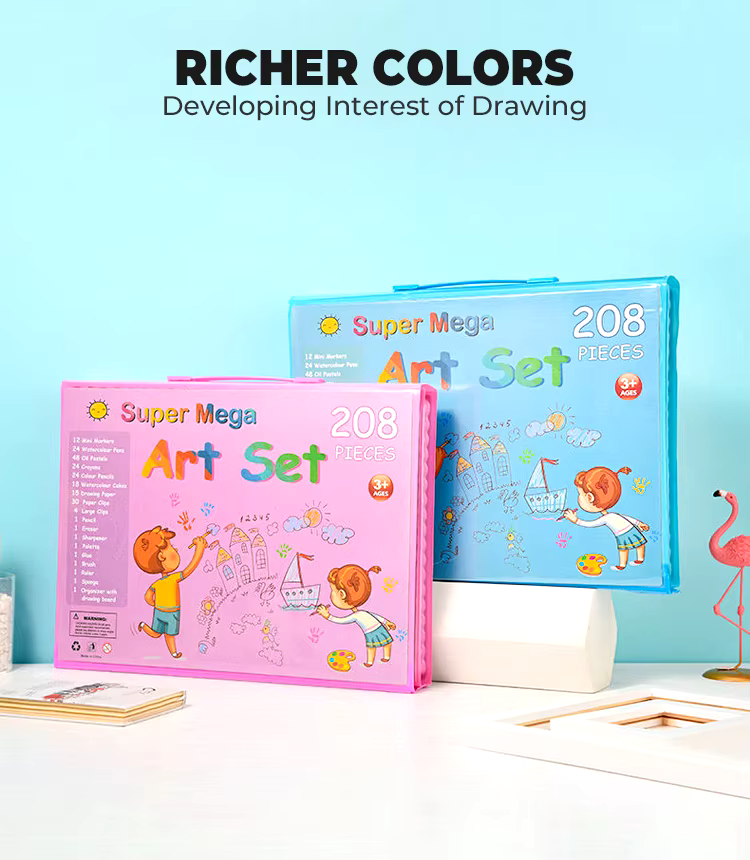 208-osainen Lasten Taidesetti – Täydellinen Piirustus- ja Maalaussetti Kotelossa!