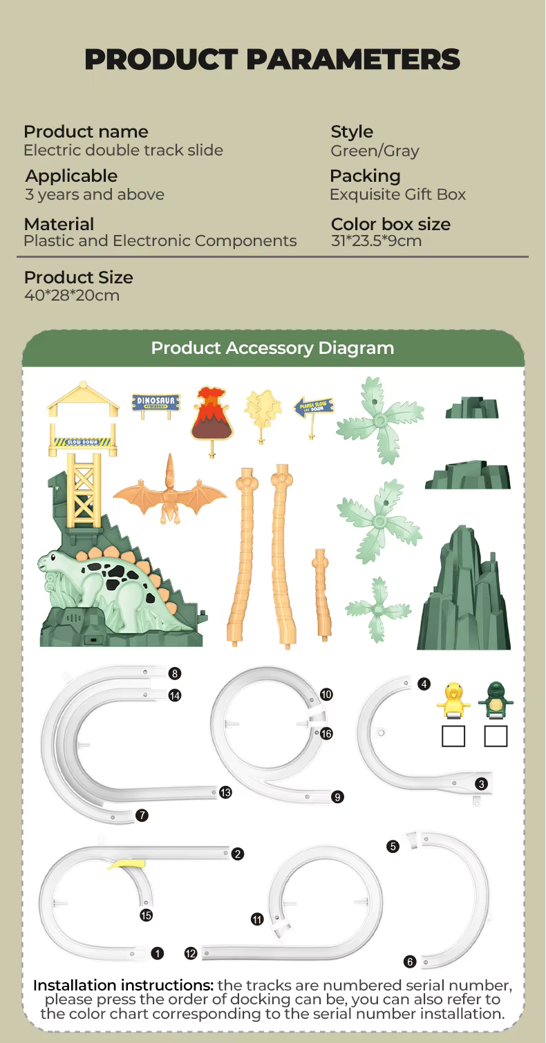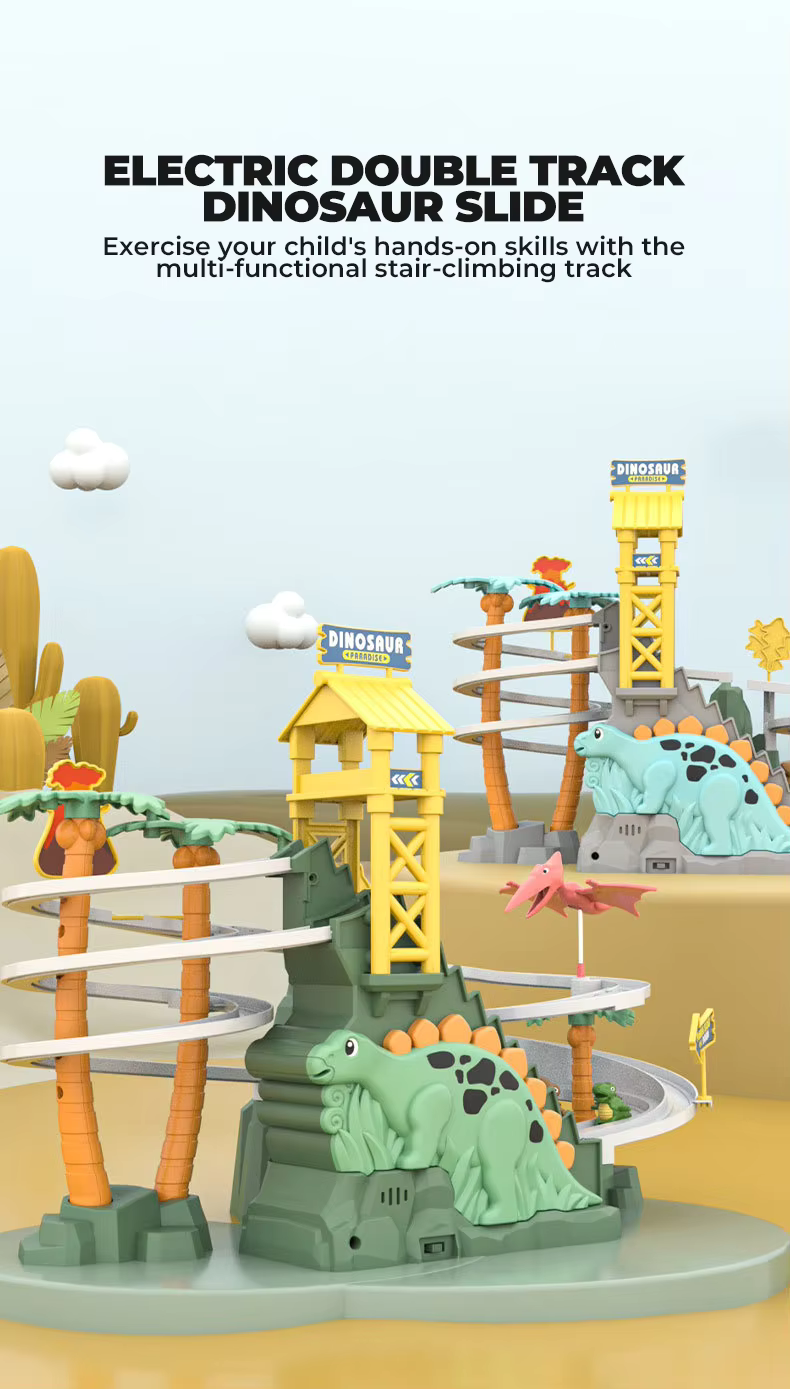 Tämä akulla toimiva liukutelalelu tarjoaa vauhdikasta ja opettavaista leikkiä valojen ja musiikin siivittämänä! Soveltuu eri ikäisille lapsille – 1–7-vuotiaille – tukien motorisia taitoja, aistikehitystä ja luovaa ajattelua. Lelu on erityisen hyödyllinen myös aistiherkille lapsille. Automaattinen autoteline houkuttelee itsenäiseen leikkiin ja kehittää ongelmanratkaisukykyä. Täydellinen lahja lapsen kehitystä tukevaan leikkiin!