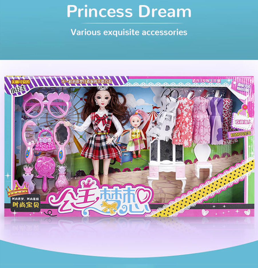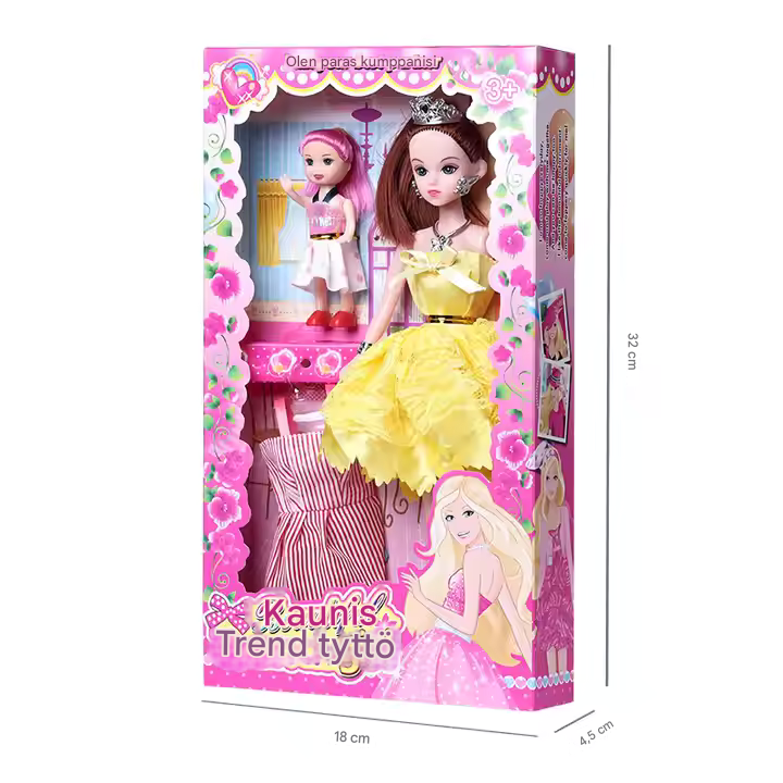 11,5 tuuman prinsessanukkesetti, ihanteellinen pukeutumispeleihin, pakattuna lahjarasiaan!