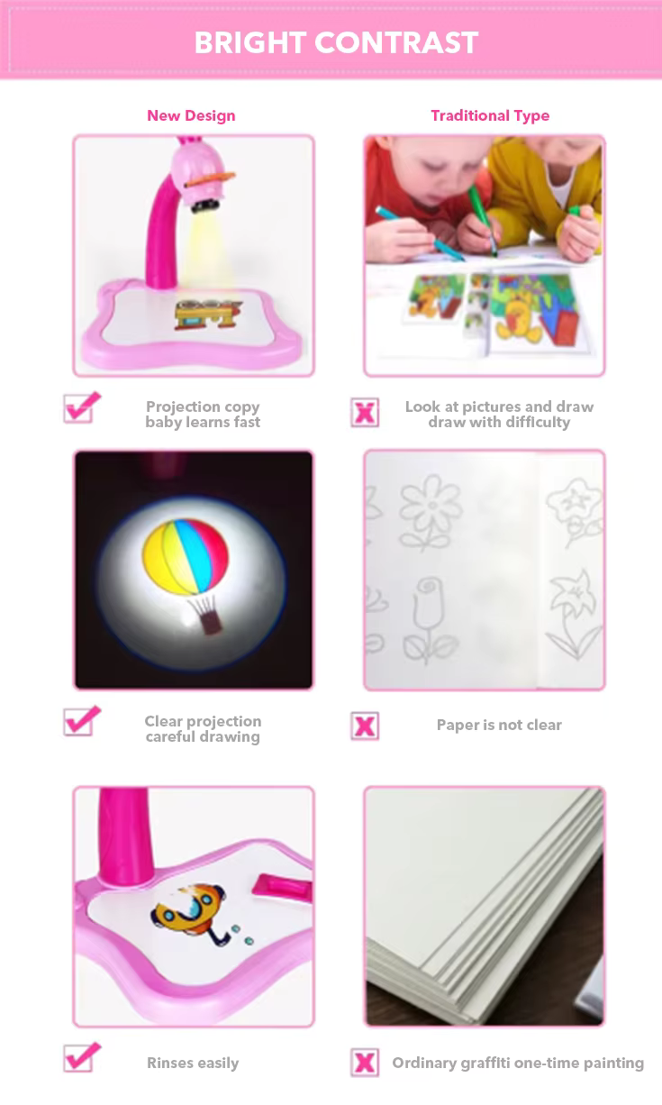Interaktiivinen lasten projektiotyöpöytä yhdistää leikin ja oppimisen luovalla tavalla. Projektorilla varustettu oppimispöytä kehittää lapsen luovuutta, hienomotoriikkaa ja ongelmanratkaisutaitoja. Tarjoaa hauskaa tekemistä ja ikätasoon sopivia haasteita. Tukee mielikuvitusta, taiteellista ilmaisua ja teknistä ajattelua. Erinomainen valinta kotiin tai lahjaksi – tilaa nyt erikoishintaan ja nopealla toimituksella kaikkialle Suomeen!