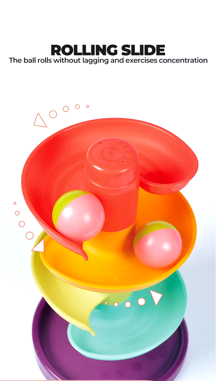 Tämä 7-kerroksinen liukumäkilelu sopii täydellisesti vauvoille ja taaperoille motoristen taitojen harjoitteluun pallojen pudotuksen ja pinottavien osien avulla. Se tukee hienomotoriikkaa, loogista ajattelua ja luovuutta hauskassa muodossa. Turvallisista, myrkyttömistä materiaaleista valmistettu lelu on erinomainen lahja ja oppimisen väline lapsille kotikäyttöön. Leikkiminen kehittää taitoja askel askeleelta.