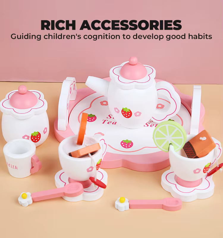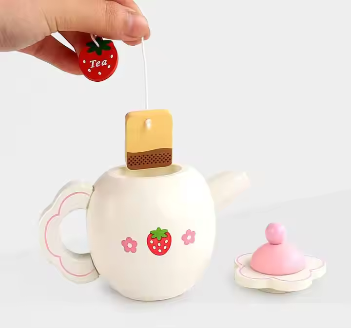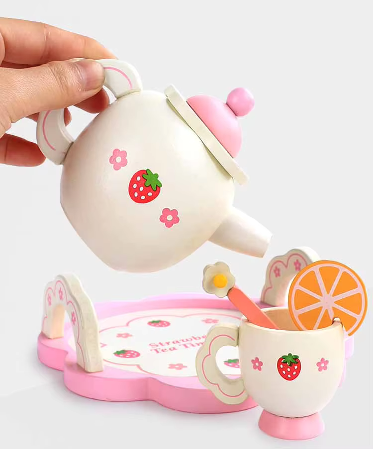 Puinen teejuhlasetti lapsille, ihanteellinen mielikuvitukselliseen leikkiin!