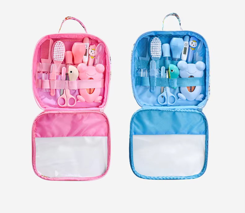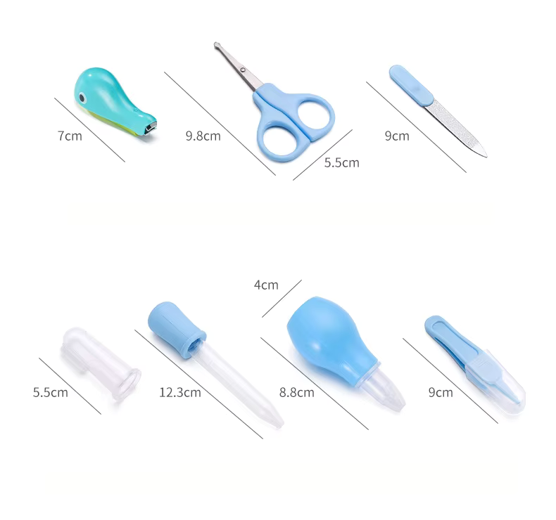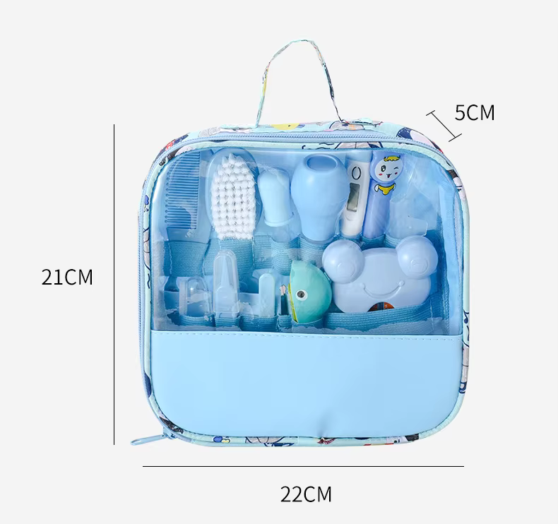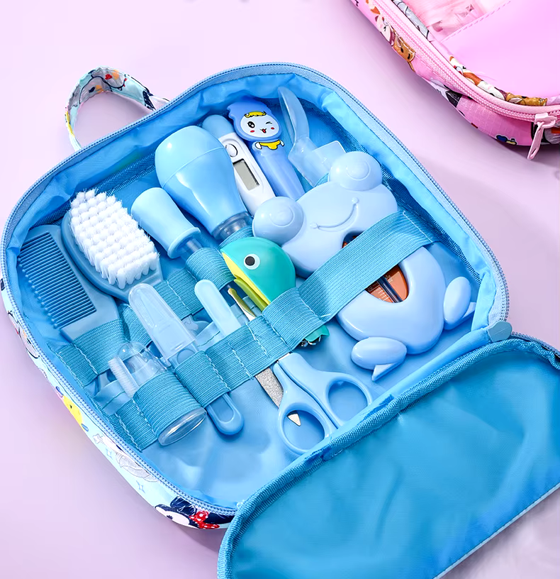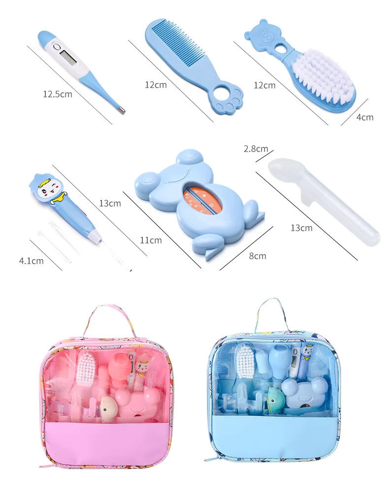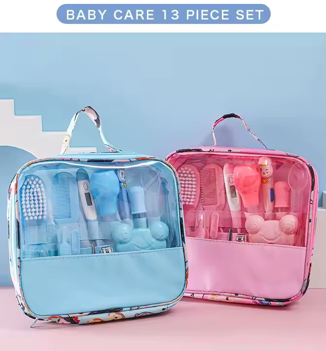 Tämä 13-osainen vauvanhoitosetti sisältää kaiken tarpeellisen, kuten lämpömittarin, nenäimurin ja kynsitarvikkeet. Digitaalinen lämpömittari varmistaa tarkan mittauksen, ja nenäimuri helpottaa tukkoisuutta. Turvalliset trimmaustarvikkeet sopivat vauvan herkille kynsille. Setti on valmistettu korkealaatuisista materiaaleista ja sopii erinomaisesti arkeen sekä matkalle.