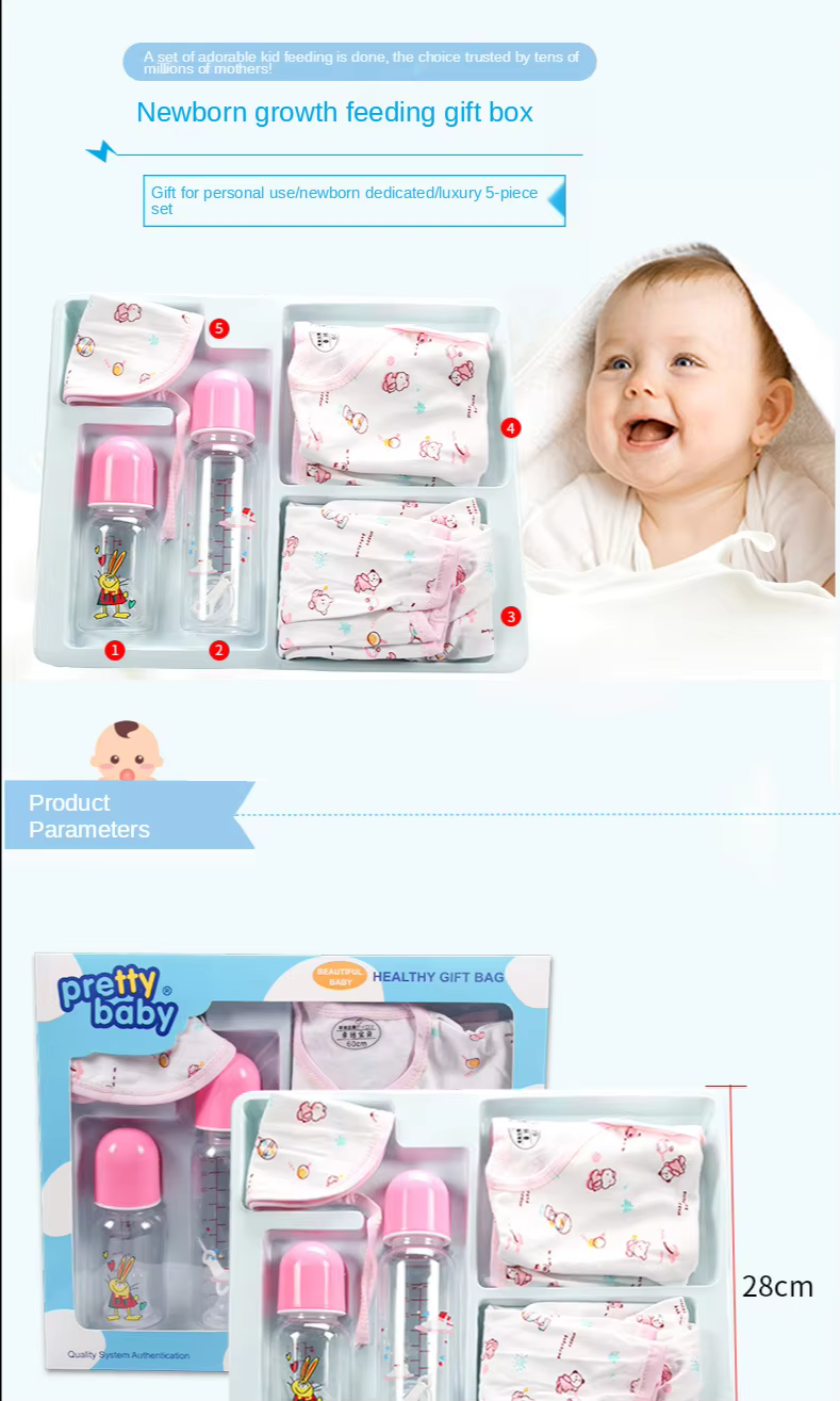Löydä täydellinen ruokintaratkaisu vastasyntyneelle tällä 5-osaisella vauvasetillä, joka sisältää laadukkaat PP-tuttipullot, pehmeät ruokalaput ja mukavat vauvan vaatteet. Setti on suunniteltu nykyaikaisille vanhemmille tarjoamaan turvallisuutta ja käytännöllisyyttä jokapäiväisessä arjessa. BPA-vapaat tuttipullot ovat kevyitä ja helppoja puhdistaa, ja ruokalaput pitävät vaatteet siisteinä. Pehmeät ja hengittävät vaatteet takaavat vauvan mukavuuden koko päivän. Täydellinen kotiin ja matkoille – kaikki tarpeellinen yhdessä tyylikkäässä paketissa.