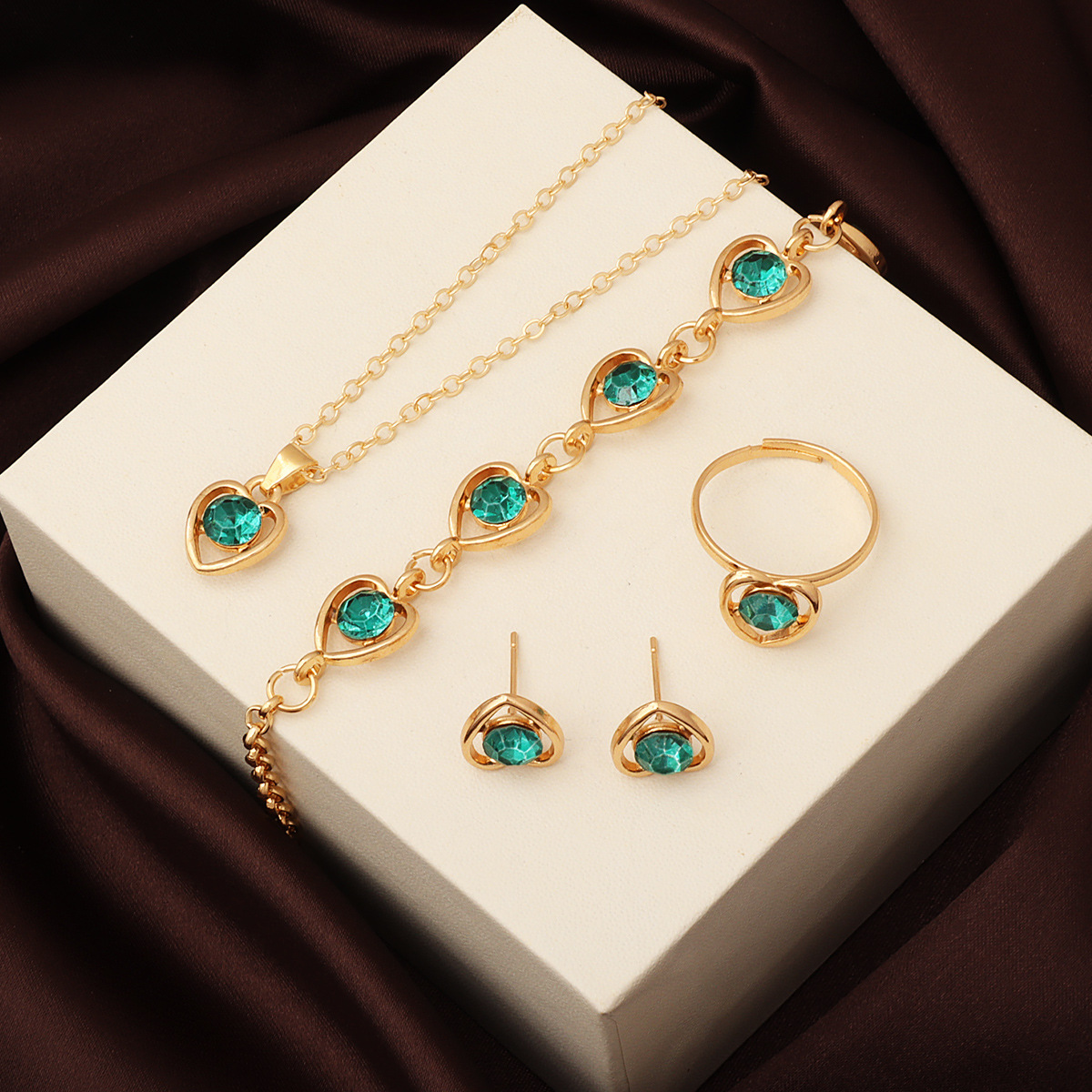 Vihreä luksuskorusetti, joka sisältää sormuksen, kaulakorun, kellon, korvakorut ja rannekorun!