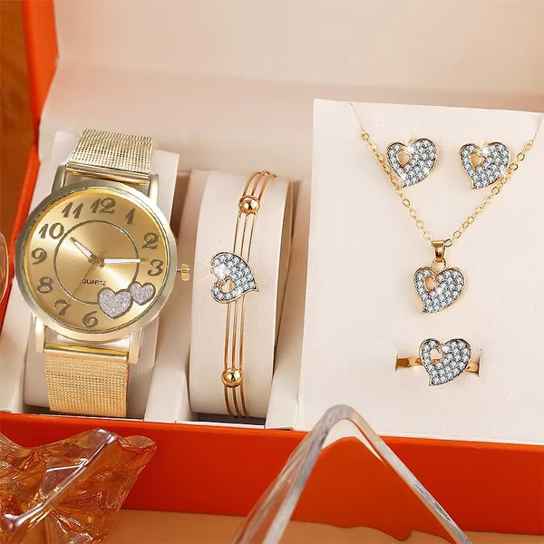 Aloita aamusi tyylillä ja rauhassa. Tämä kaunis naisten kello yhdessä siihen sopivan kaulakorun ja rannekorun kanssa tekee pukeutumisesta helppoa. Sinun ei enää tarvitse miettiä, mitkä korut sopivat yhteen – tämä setti on suunniteltu täydellisesti yhteensopivaksi. Näytät siistiltä, tyylikkäältä ja itsevarmalta joka päivä.