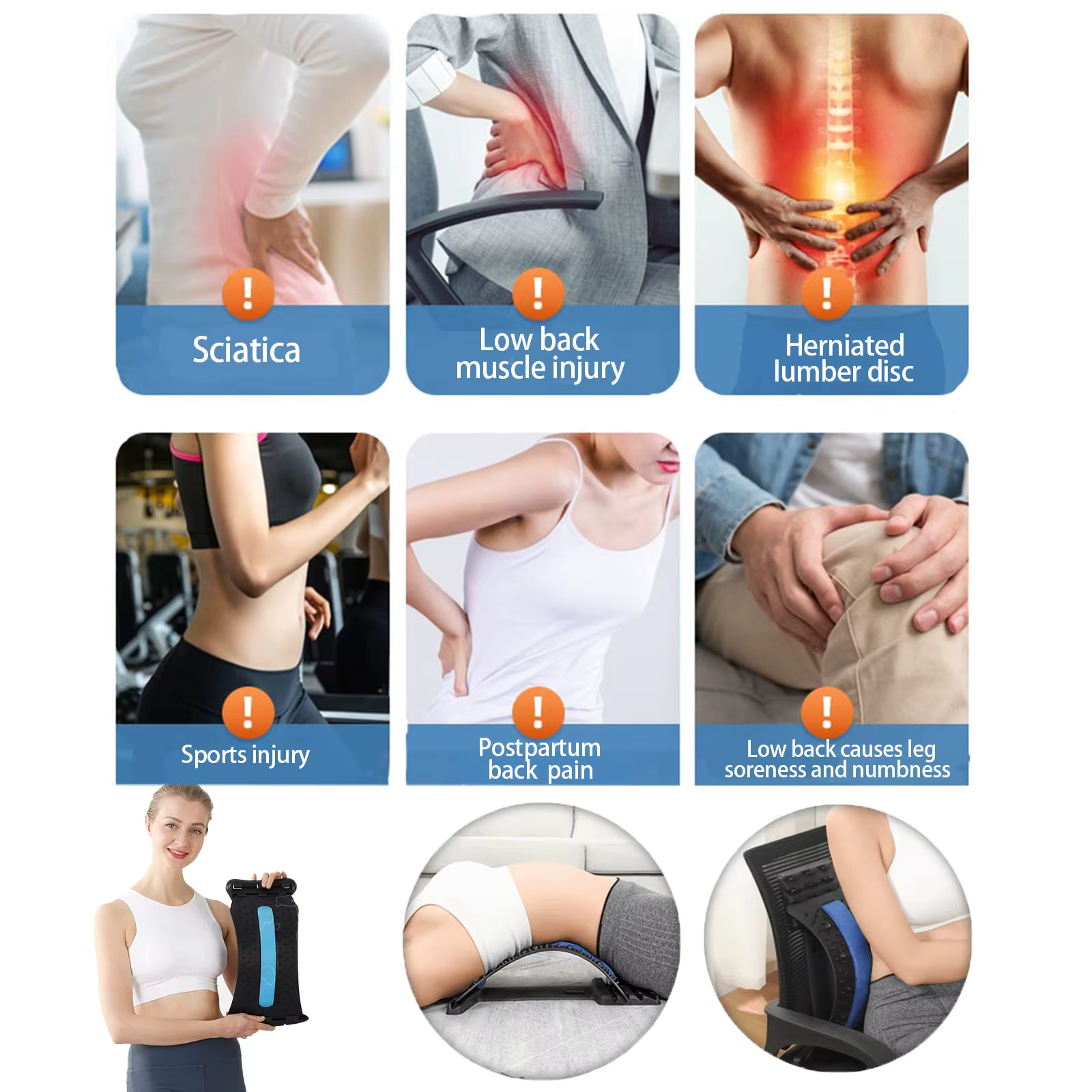 Säädettävä lannerangan veto-selkäpaarit – Monitasoinen selkähierontalaite alaselän kivunlievitykseen