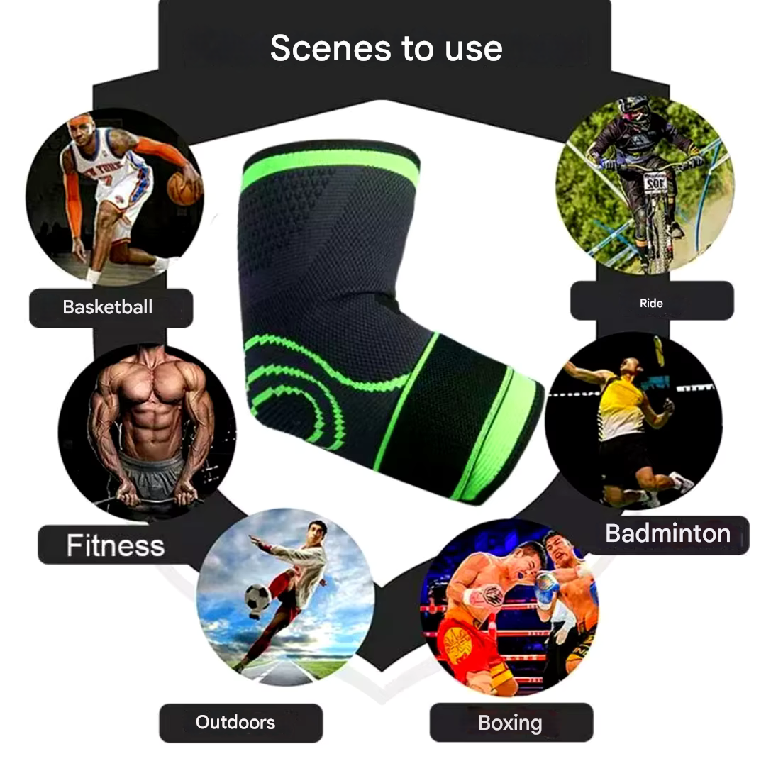 Valmistettu erittäin joustavasta lateksi silkistä ja 3D-pyöreä neulotusta kankaasta, nämä kyynärsuojat ovat mukavat ja joustavat, ja ergonominen muotoilu mukautuu luonnollisesti käden muotoon, varmistaa tasaisen paineen, jotta voit liikkua helposti.