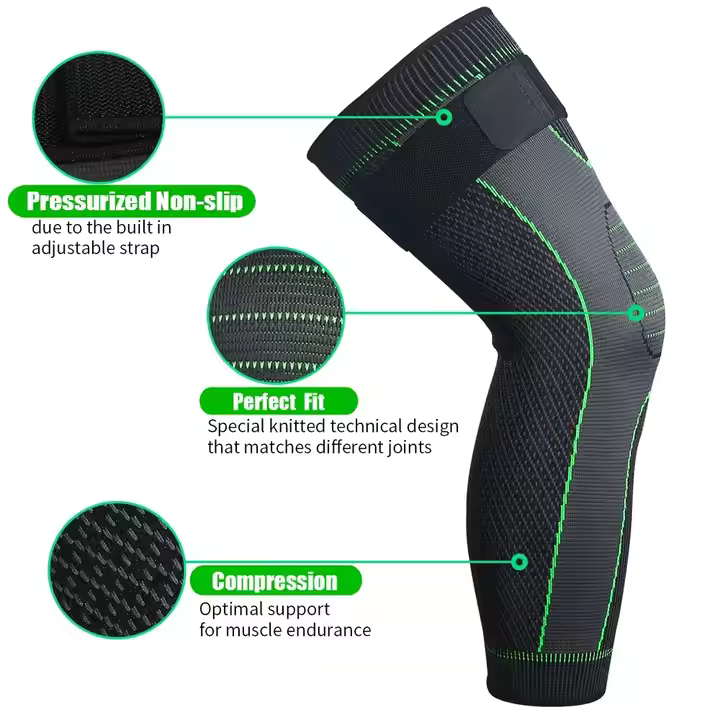 • Neulottu muotoilu: Mukautuu polven muotoon ja antaa tasaisen puristuksen koko polvelle.