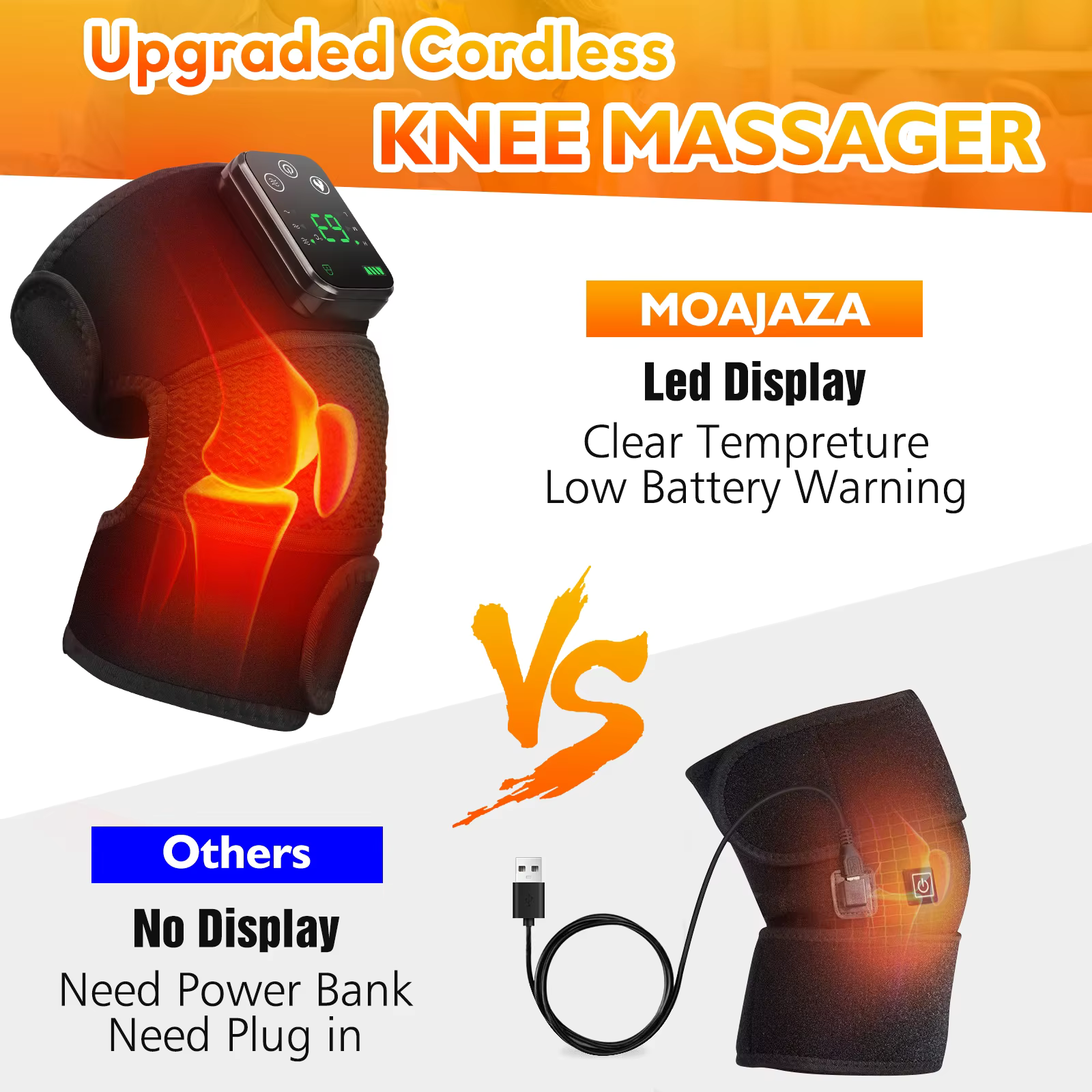 - Yhdistää värähtelyn ja lämmön voimakkaaksi polvi hieronta laitteeksi, joka tarjoaa syvähierontaa ja edistää polven terveyttä.